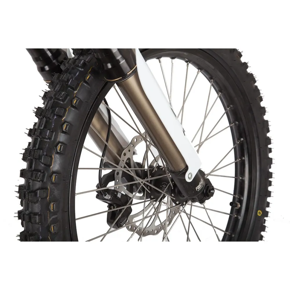 • Байк, весом 50 кг, готов выдержать нагрузку до 100 килограмм. Колёса, диаметром 19 дюйма, разгоняются быстрее. Внедорожная резина поможет байку преодолеть разные виды дорог.