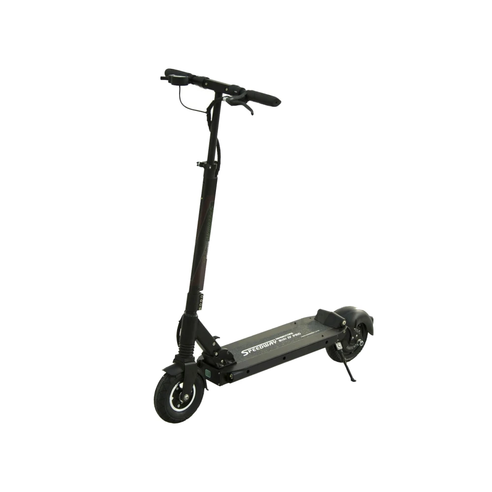 Мощность мотор-колеса 500 Вт, колеса диаметром 8 дюймов, с качественными шинами, увеличивающими сцепление с дорожным покрытием, колеса оснащены крыльями, на заднем установлен стоп-сигнал, загорается при торможении. Тормозная система у Speedway Mini 4 Pro двух видов, дисковая и электронная. Контролировать скорость просто.