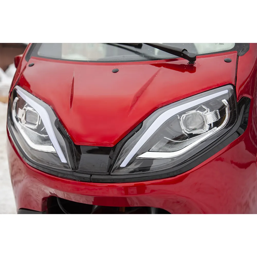 Максимальная скорость 20-25 км/час легко достигается благодаря мощности двигателя 1000 Вт. Улучшенная тормозная система позволяет быстро остановиться в экстренных ситуациях. Модель компактна, пользователю не стоит беспокоиться о поиске места для парковки. Улучшенные показатели грузоподъемности техники позволяют доставлять грузы массой 200 кг. Широкие колеса с мощными протекторами придают транспортному средству повышенную проходимость. Яркие светодиодные фары хорошо освещают дорогу в темное время суток.