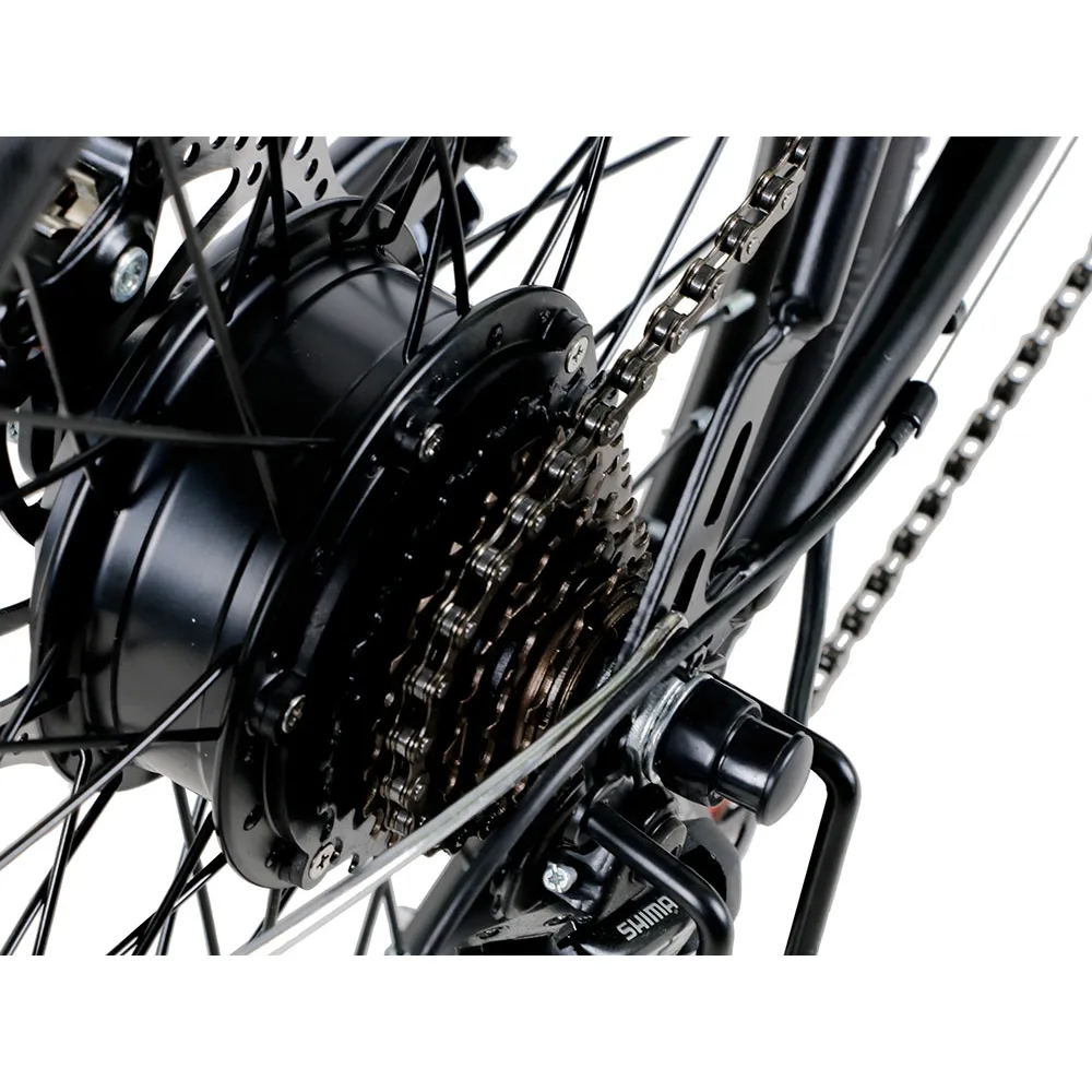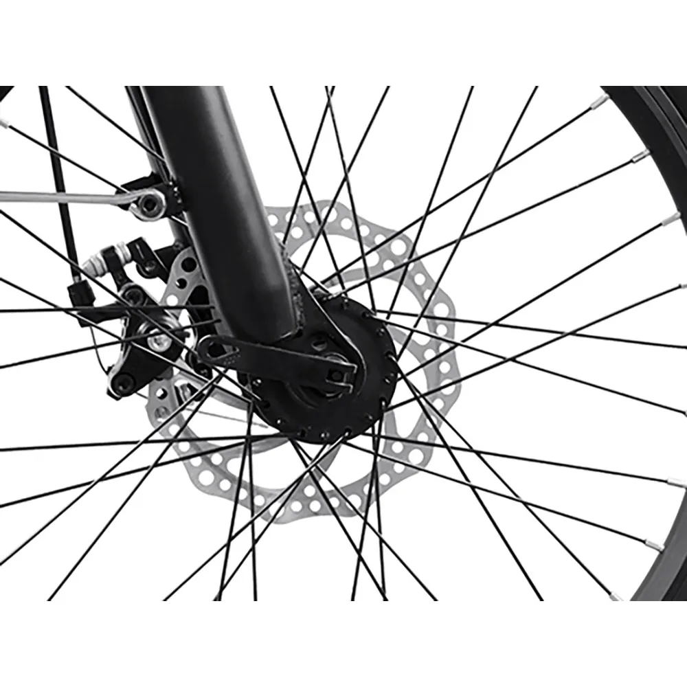 Из технических характеристик, важных для каждого райдера, производитель выделяет фирменный электродвижок мощностью (250 Вт) и емкую батарею (8А*ч). Параметров элементов достаточно для развития скорости до 25 км/час и преодоления пути до 60 км. Батарея размещена в специальном водо непроницаемом блоке за подседельной частью. Не мешает райдеру при длительной езде. Седло регулируется по высоте, мягкое, повторяет анатомические части тела ездока, не вызывает напряжения. Бортовой компьютер размещен на видимой левой части руля, сигнализирует о пройденном расстоянии, скоростных параметрах и зарядке батареи. При массе 24 кг электровелосипед рассчитан на грузоподъемность 100 кг.