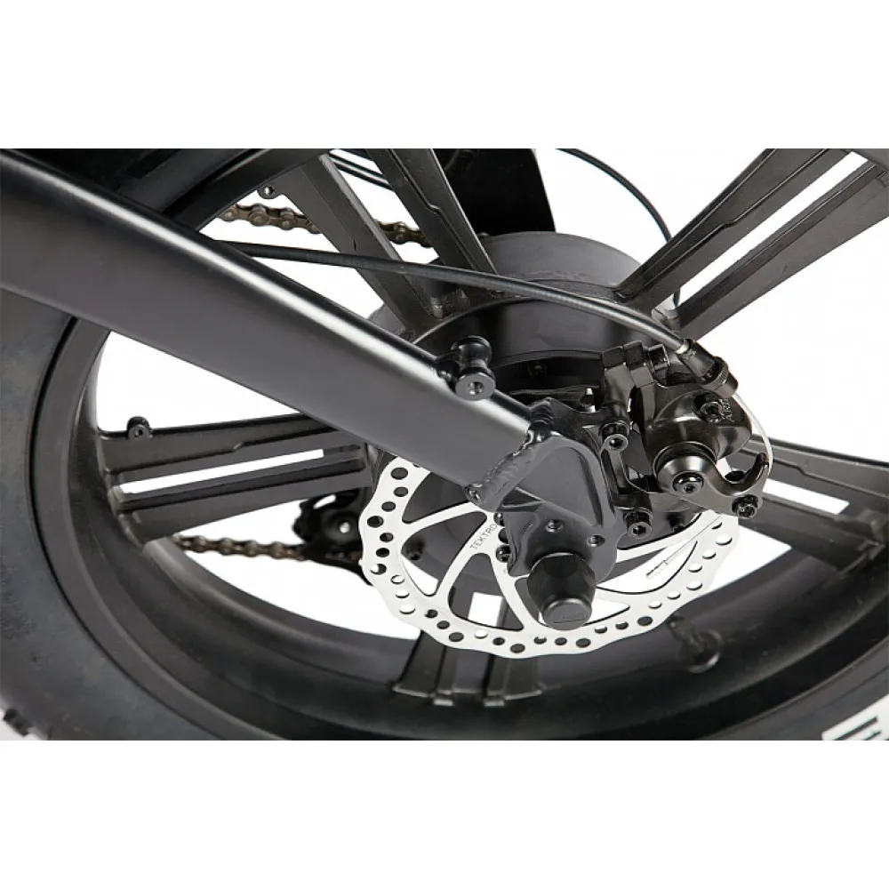 Мощность двигателя составляет 500Вт, что дает возможность моментального ускорения и разгона до максимальной скорости в 35 км/ч. Тормозная система состоит из дисковых тормозов, которые гарантируют безопасность передвижения в любой момент времени.