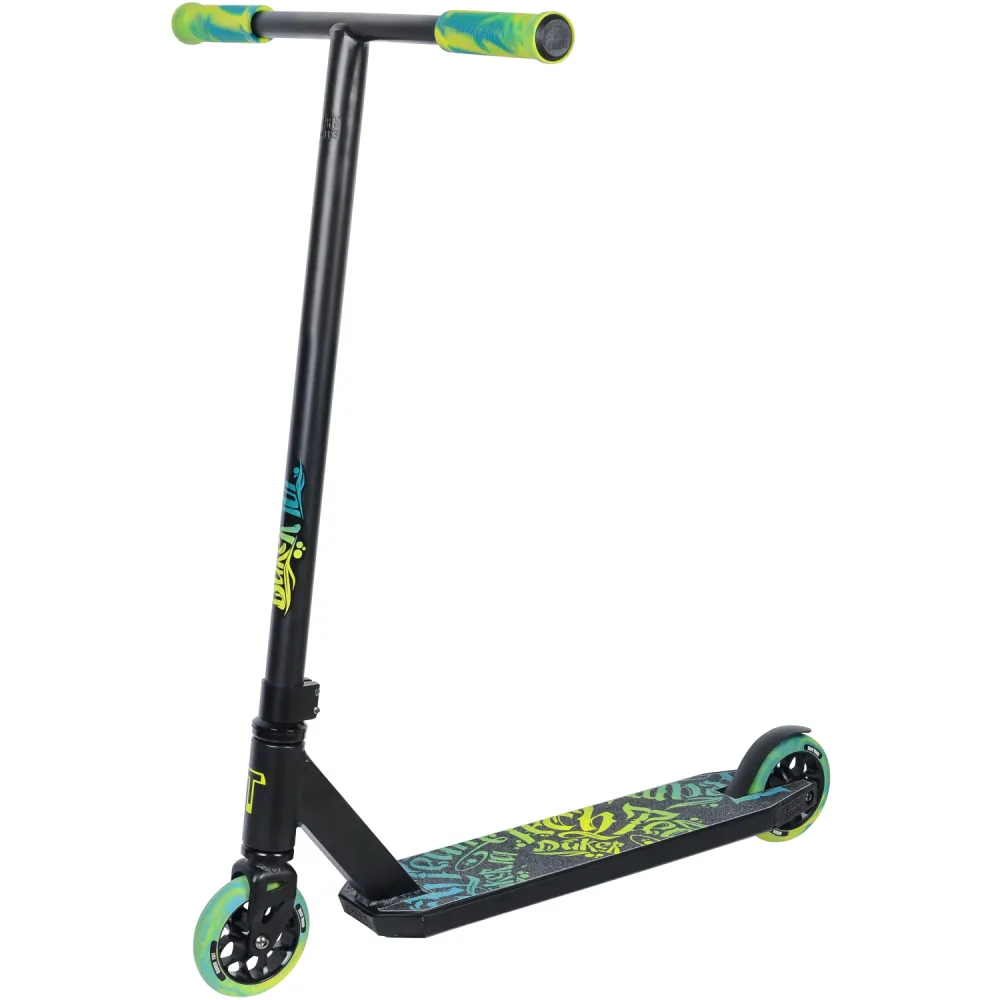 Tech Team Duker 101 2021- это трюковый самокат 2021 года с крутым дизайном. Если экстрим не для вас или надоест, то можно просто ездить по городу с ветерком. Аппарат рассчитан на детей от 8 лет, высота руля составляет 57 см, он легко регулируется под рост ездока. Руль и вилку производители сделали из тяжелого, но надежного материала-стали. Дека, как и на большинстве самокатов, сделана из алюминия. Она легкая и при этом прочная. Диски колёс состоят из алюминия, так что надёжность обеспечена. К тому же такие диски выглядят выигрышнее, чем из простого пластика. IHC-один из видов компрессионных систем. Именно она установлена на Tech Team Duker 101 2021. IHC Легче, чем обычная HIC-система.