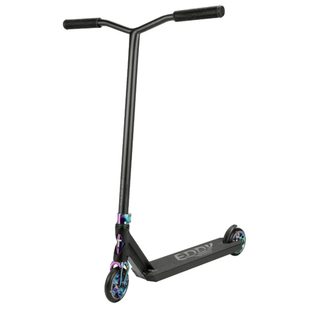 Eddy - Трюковой самокат от компании Techteam модельного ряда (2021) Это самый легкий самокат во всей линейке и идеально подходящий для райдеров с ростом от 160 до 177 см. Самокат из алюминия, с полиуретановыми колесами жесткости и дисками из 88-го алюминия класса А. У него классический и хорошо зарекомендовавший себя руль в форме крыльев чайки. Габариты деки, довольно стандартны, и имеют полезную площадь в 39 см.