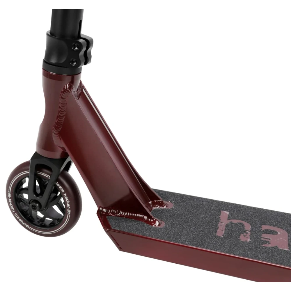 Трюковой самокат Techteam hacker 2021-го модельного года, прекрасно подходит любителям езды с ростом от 162 см вплоть до 180 см. Этот самокат обладает внушительным оснащением за свою стоимость techteam hacker может предложить деку из алюминия – шириной в 120 мм и длиной 520 мм с полезной площадью 370 мм. Имеет заваренную переднюю часть под скосом. И по тенденции моды для снижения веса была оснащена нейлоновым тормозом. Благодаря этому удалось снизить вес до 3900 грамм при этом сохранив свою прочность и надежность тормоза.