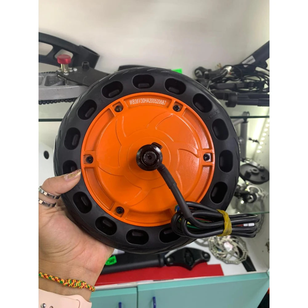 Мотор-колесо для электросамоката Kugoo S1 сделан из высокопрочной резины, которая обеспечивает надежное сцепление и безопасность, что позволяет ездить по самым непредсказуемым дорожным поверхностям. Колесо устроено таким образом, что его техническая основа защищена пластиковым каркасом, обеспечивающим защиту от механических повреждений, влаги и пыли. Его мощность составляет 350W напряжением в 36V. Мотор является встроенным, что положительно сказывается на эксплуатационных характеристиках устройства, а также облегчает замену в случае необходимости.